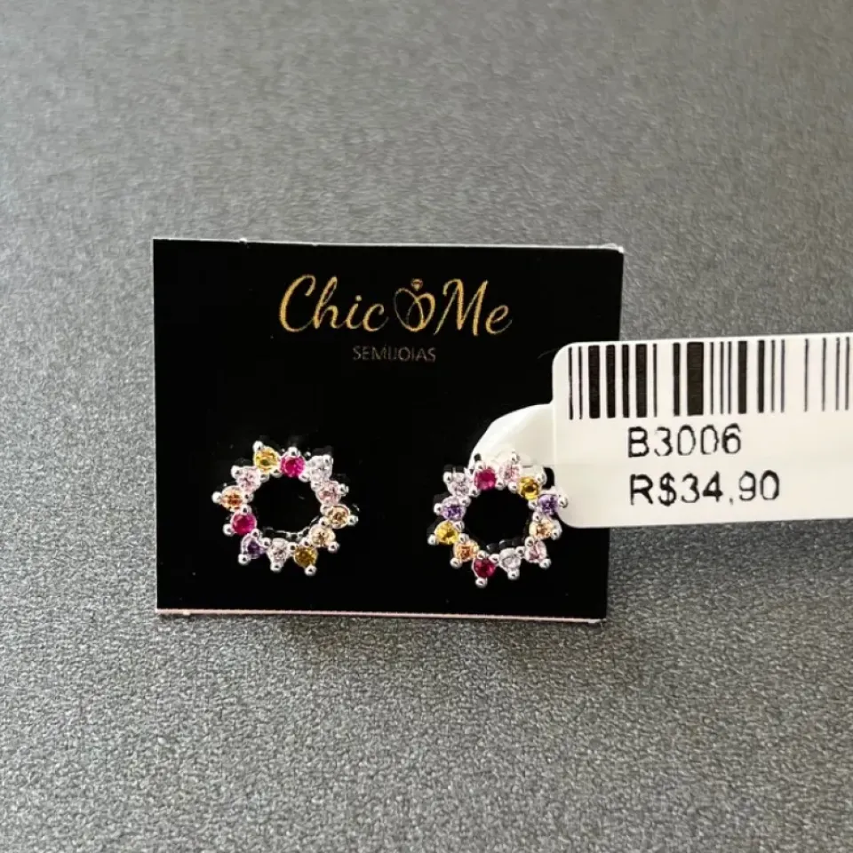 B3220 BRINCO MEIA ARGOLA LUXO ZIRCONIAS...